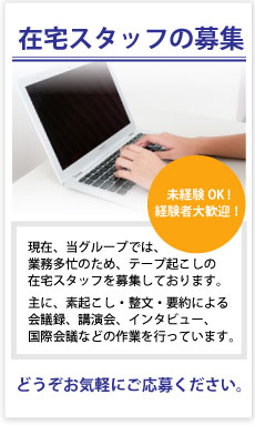 出張録音も行っています。 詳しくは、テープ起こしページをご覧ください。